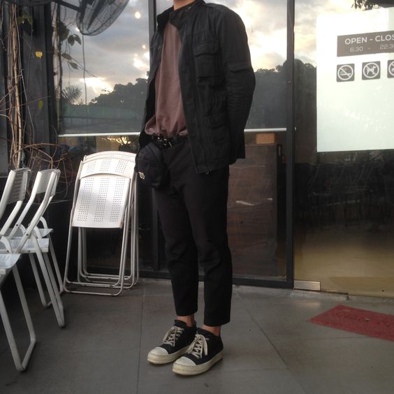 Một lưu ý nhỏ nhỏ là: Đừng mặc quần ống rộng khi đi kèm Rick Owens cổ cao vì hai lý do. Thứ nhất, hoặc bạn sẽ bỏ ống quần ra ngoài giày, như thế sẽ che mất vẻ đẹp mà bạn muốn khoe. Thứ hai, hoặc bạn sẽ cho quần vào giày, như thế thì một chiếc quần bó sẽ dễ dàng hơn việc nhét cả một đống ống quần vào trong cổ giày bé xíu.