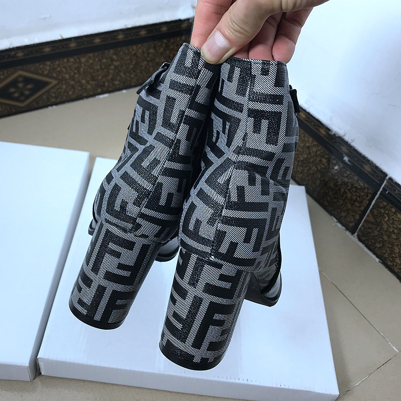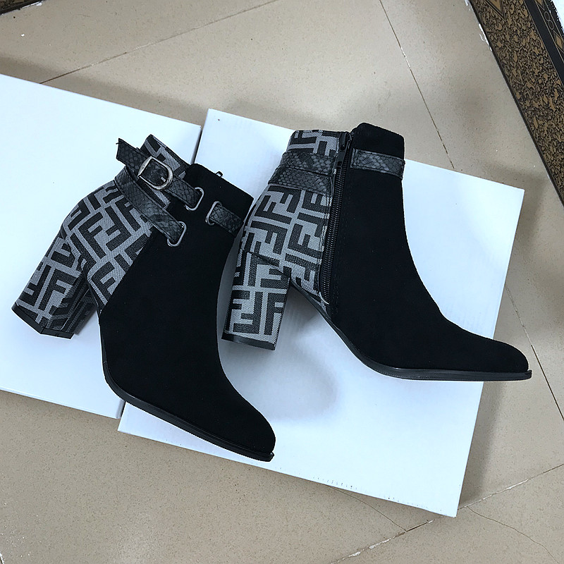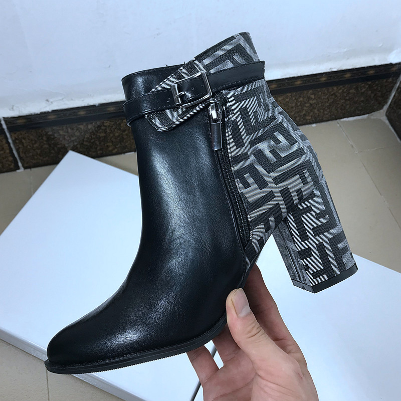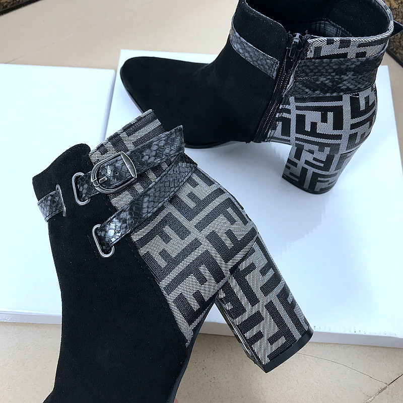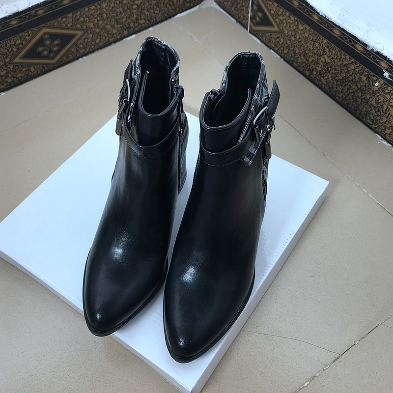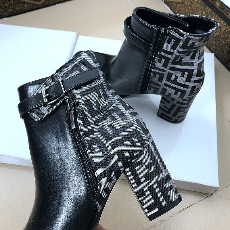 WOMEN HIGH HEELS BOOTS BASIC B14.HIE | Boots Cổ ngắn gót trụ vuông phối màu hoạ tiết caro mang phong cách thời trang nữ tính, sành điệu.